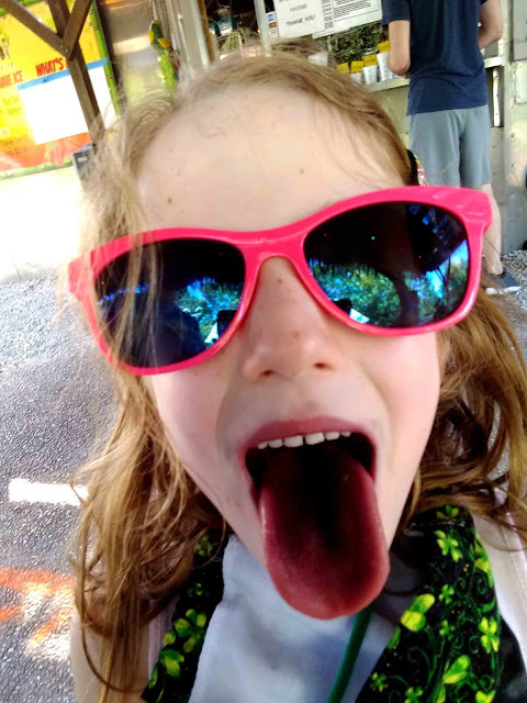 After mini golf we got snow cones. You'll never guess what color Maggie's was.